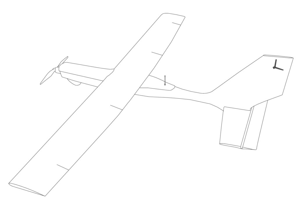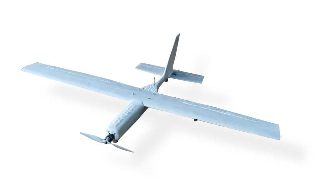 Корпус БпЛА виготовлений зі скловолокна, просоченого епоксидною смолою, що забезпечує йому міцність і легкість. Внутрішній простір заповнений поліуретановою піною для додаткової жорсткості та амортизації. Місця кріплення двигуна, крил і кришок посилені додатковими шарами скловолокна та дерев’яними вставками, що підвищує їхню надійність. Зовнішня поверхня має світло-сірий колір.